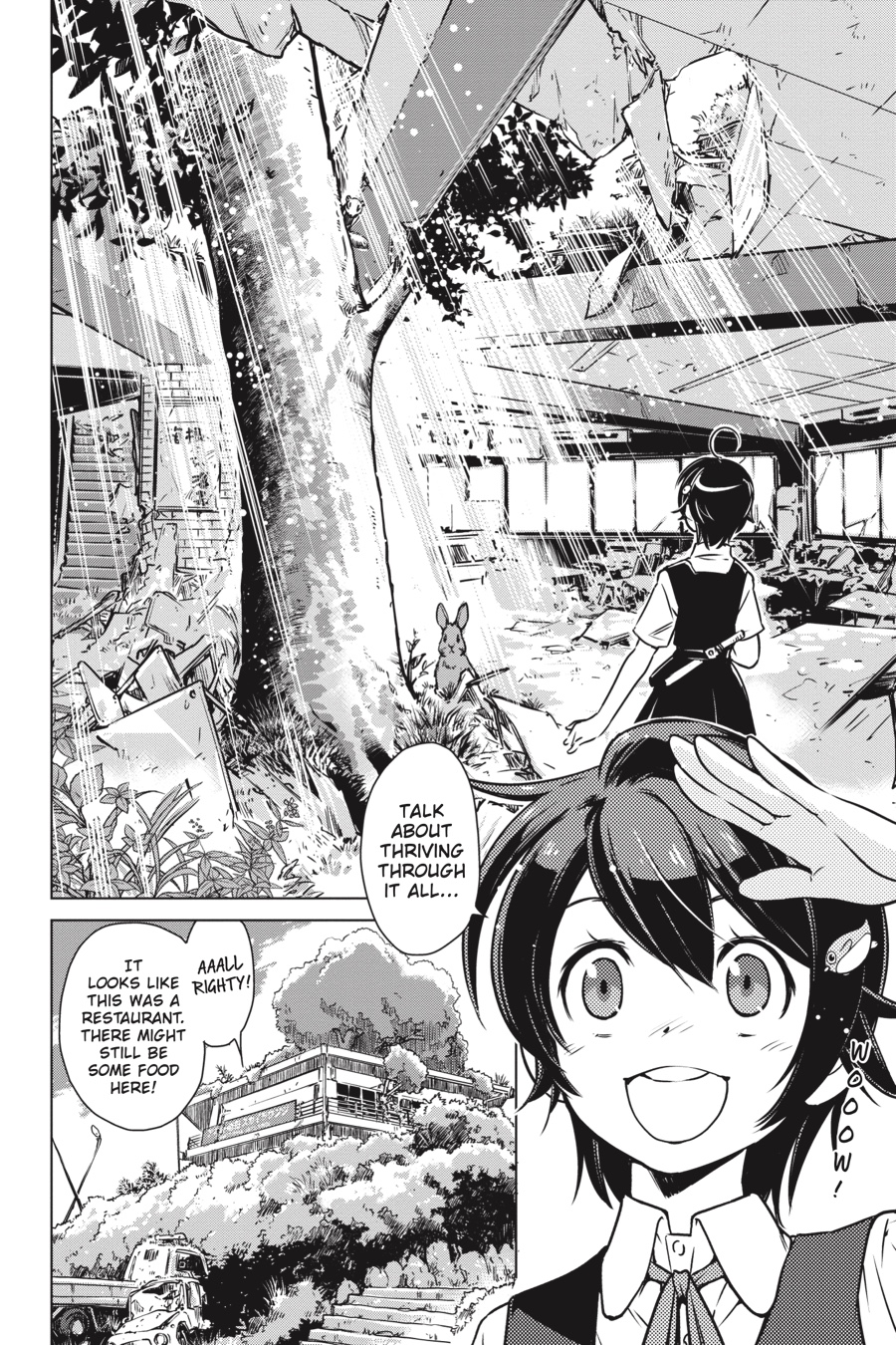 All alone after the end of days, two girls ride through the desolate ruins of Japan—but they’re not about to let the collapse of civilization get in the way of sightseeing!From the hot springs of Hakone to the massive Tokyo Big Sight, they’ve got the run of the country’s most popular tourist spots all to themselves, so why not make the most of it?