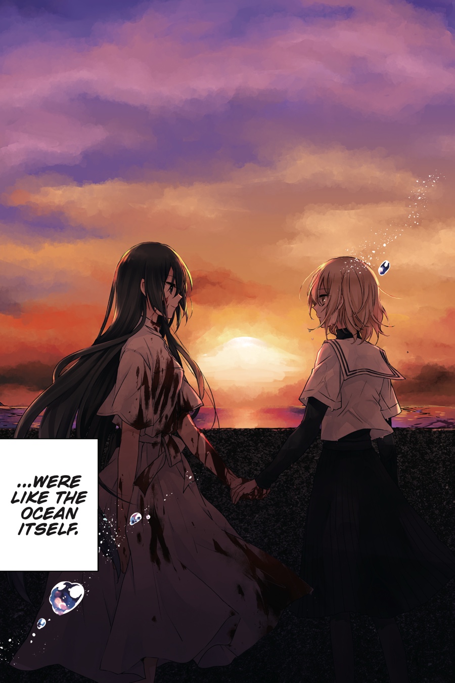 Hinako, a high school student with a dark past, lives alone in a town by the sea. Haunted by a constant sensation of drowning, she can barely go through the motions of her tedious life…until the day a monster tries to eat her! After passing out in the struggle, she awakens to find she’s been rescued by a beautiful mermaid. However, salvation comes at a cost—the mermaid’s protection will last only until Hinako has matured into the perfect meal! Hinako’s first instinct isn’t to run or scream, though, and an unlikely relationship between monster and prey unfolds… “I’ve come to devour you."