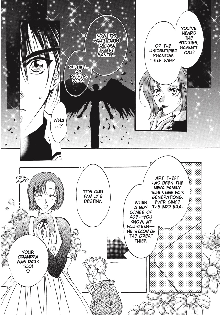 Descending from the depths of night, dorky Daisuke and devilishly dashing Dark return in a new special edition! They’re bigger and better than ever with full-color chapter illustrations in this updated omnibus collection! Today was the day. Daisuke Niwa was determined to tell the girl of his dreams how he feels about her and maybe (hopefully) become her boyfriend. Except, uhhh…she flat-out rejected him, and now he’s stuck with his alter ego, the legendary phantom thief Dark. That means both the police and his classmate Satoshi Hiwatari (the prodigious son of the police commissioner—who knew?) are after him. And what’s worse, the only way to stop the body swap is to woo the object of his affections as his usual klutzy self…