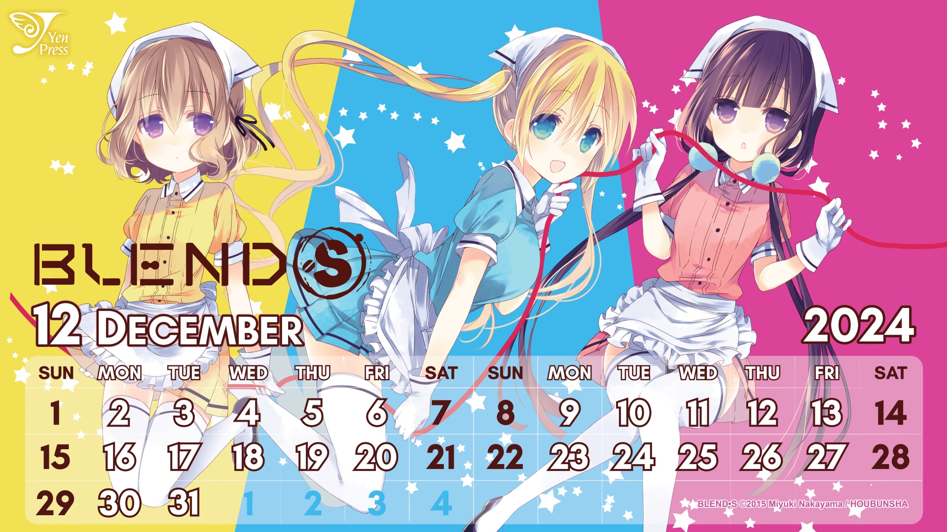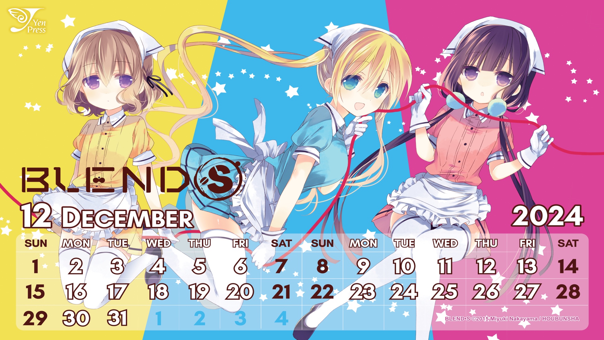 With the last calendar wallpapers of 2024, you can adorn your devices with the revenge romantasy manhwa I Tamed My Ex-husband's Mad Dog or the cute comedy manga that inspired an anime, Blend-S!