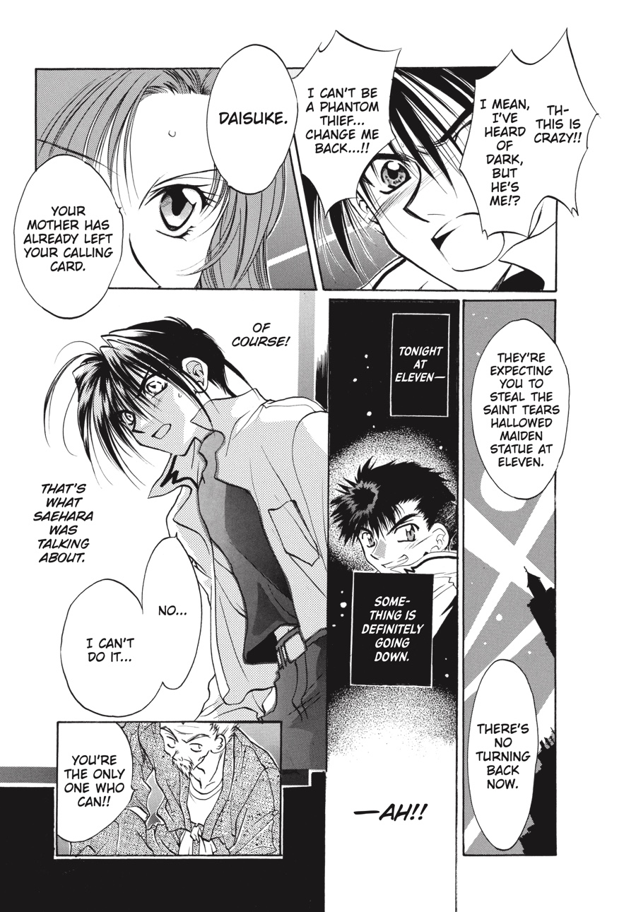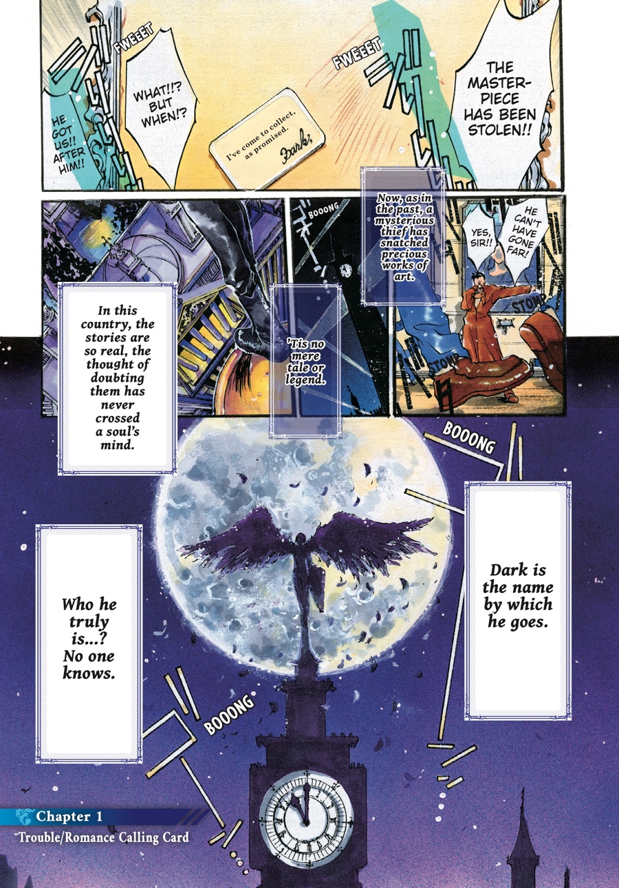 Descending from the depths of night, dorky Daisuke and devilishly dashing Dark return in a new special edition! They’re bigger and better than ever with full-color chapter illustrations in this updated omnibus collection! Today was the day. Daisuke Niwa was determined to tell the girl of his dreams how he feels about her and maybe (hopefully) become her boyfriend. Except, uhhh…she flat-out rejected him, and now he’s stuck with his alter ego, the legendary phantom thief Dark. That means both the police and his classmate Satoshi Hiwatari (the prodigious son of the police commissioner—who knew?) are after him. And what’s worse, the only way to stop the body swap is to woo the object of his affections as his usual klutzy self…